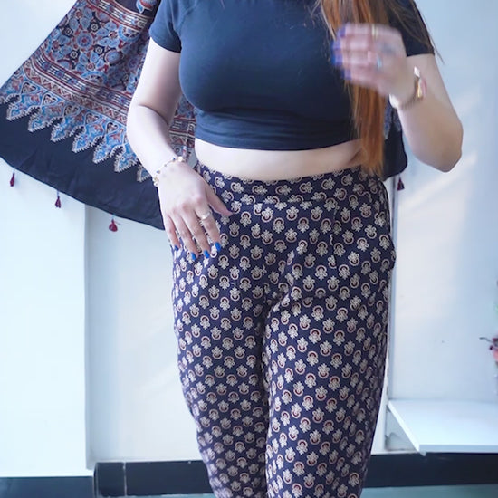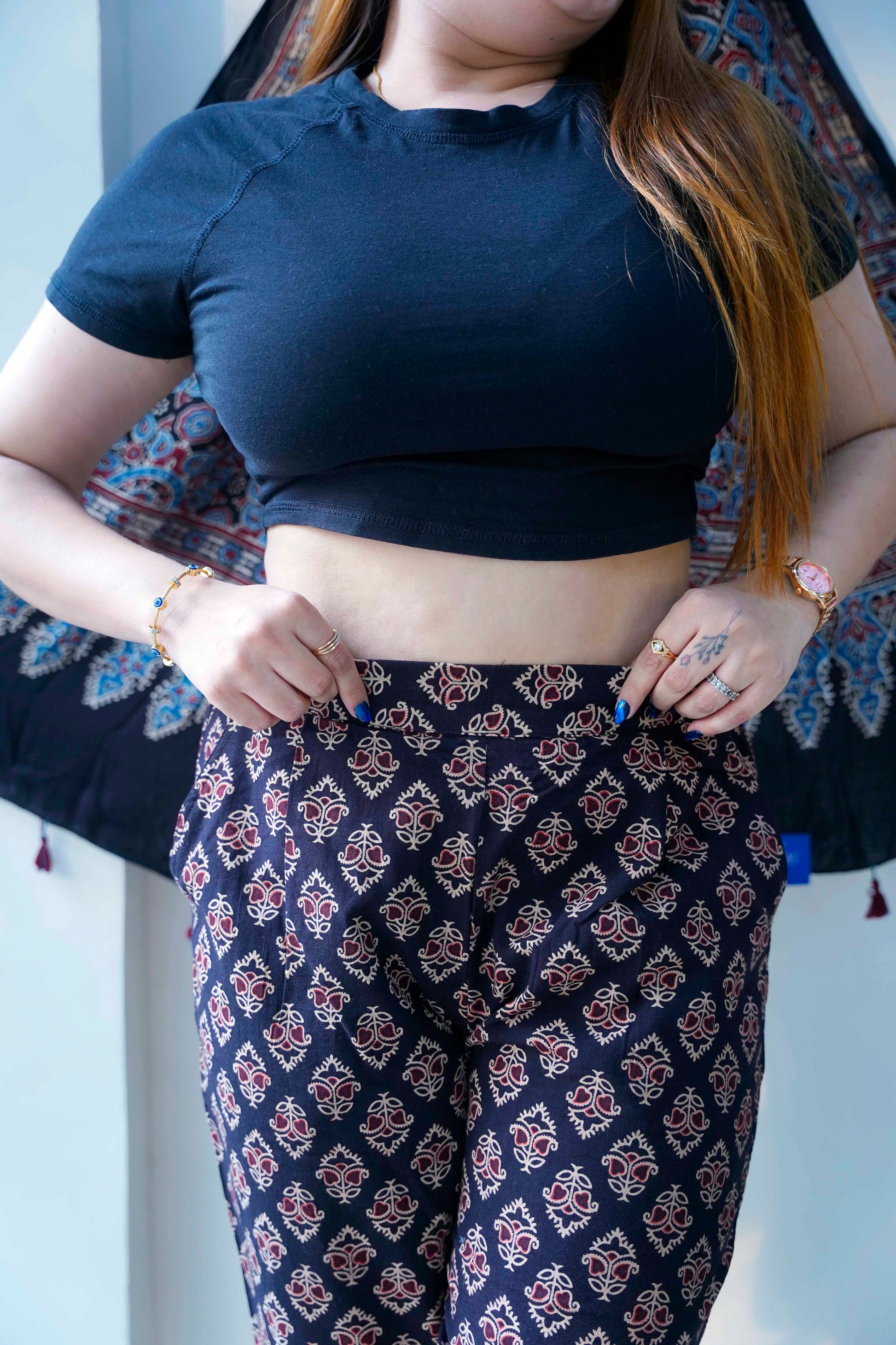 Elevate your ethnic and Indo-western styling with these handcrafted Ajrak print cigarette pants. Inspired by traditional Ajrak block printing, this piece reflects rich heritage artistry with a contemporary tailored silhouette.