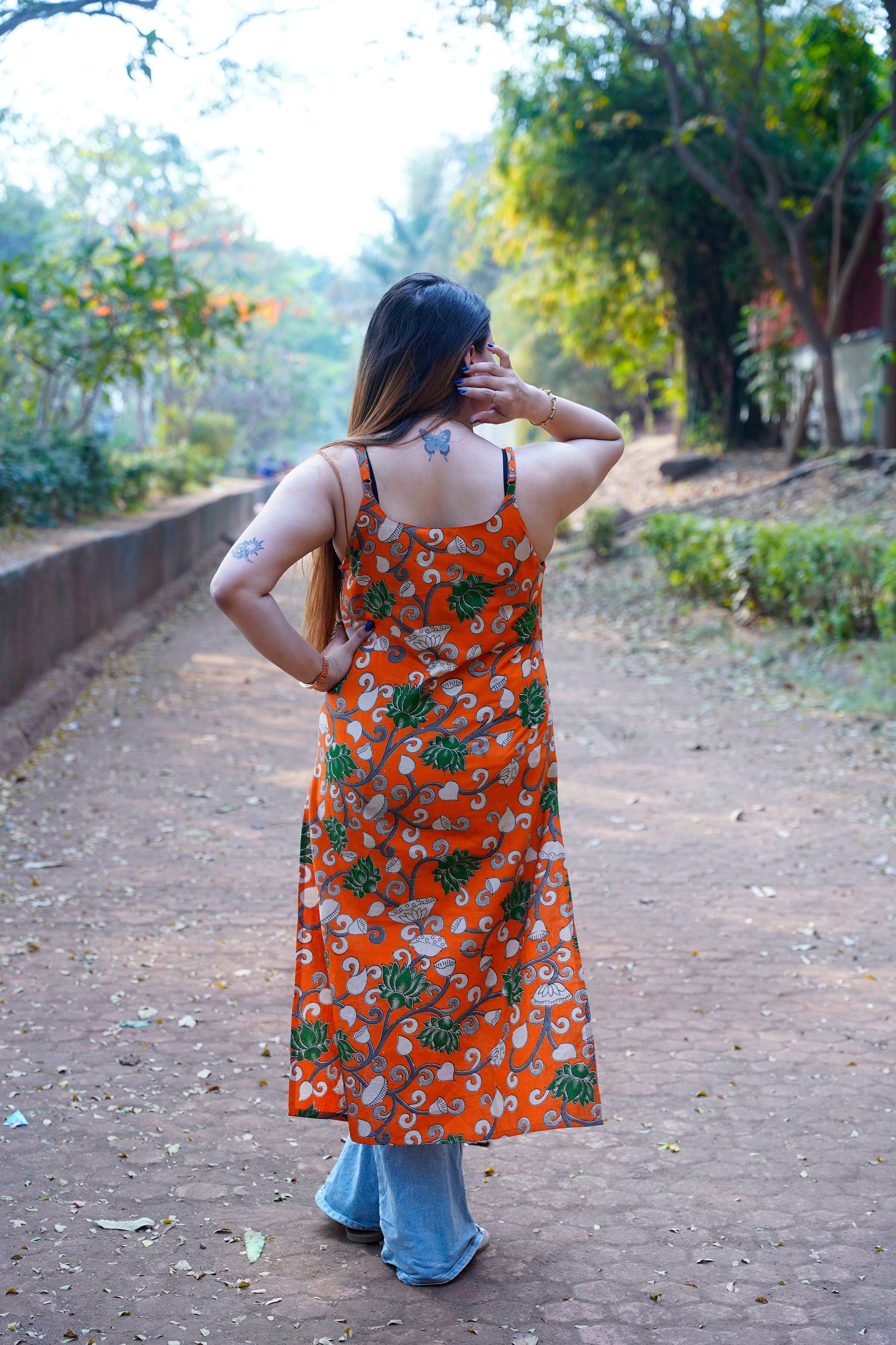 Orange Kalamkari Spegetti Kurti