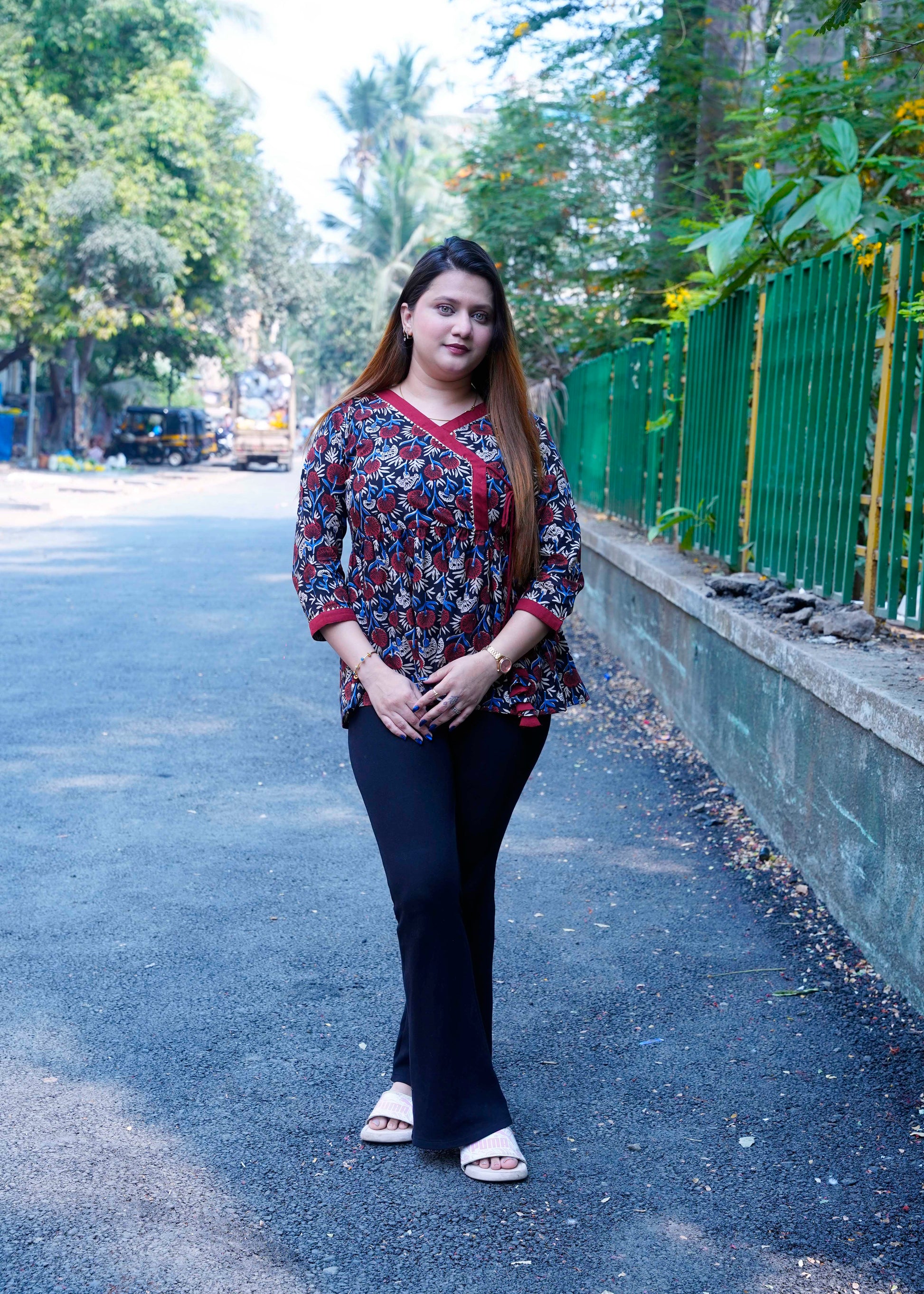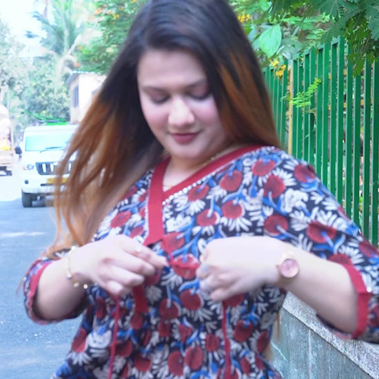 The classic Angrakha-style overlap design adds graceful ethnic charm, while the short top silhouette keeps it versatile and easy to style. Made in breathable cotton fabric, it ensures all-day comfort — perfect for festive gatherings, cultural events, office wear, or everyday fusion styling.
